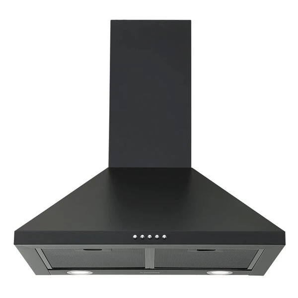 Cette élégante hotte murale au fini noir mat est idéale pour les espaces restreints. Son puissant moteur de 440 pi³/min à 3 vitesses élimine la fumée et les odeurs de cuisson persistantes, et ses lumières à DEL éclairent en douceur votre surface de cuisson. Il suffit de vous procurer la trousse de recyclage d’air (vendue séparément) pour convertir aisément cette hotte en modèle sans conduit.Hotte de cuisine pyramidale à fixation murale au fini noir mat de 60,96 cm (24 po)Moteur de 440 pi³/min testé par un tiers; homologué cETLusCommandes simples 3 vitesses à boutons-poussoirsDeux ampoules à DEL Pure Lights(MC) puissante, brillante et écoénergétique de 1,5 W conçue par Ancona qui affiche une vie utile jusqu’à 10 fois supérieure aux ampoules traditionnellesFiltres Clean Filter(MC) en aluminium lavables au lave-vaisselleLogo discret afin d’assurer l’homogénéité avec les autres électroménagers.Évacuation vers le haut (évent circulaire de 15,24 cm [6 po]).Convertible en hotte à recirculation d’air (sans conduit) à l’achat d’une trousse de filtres de conversion (vendue séparément)