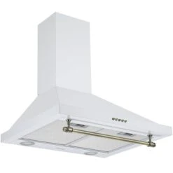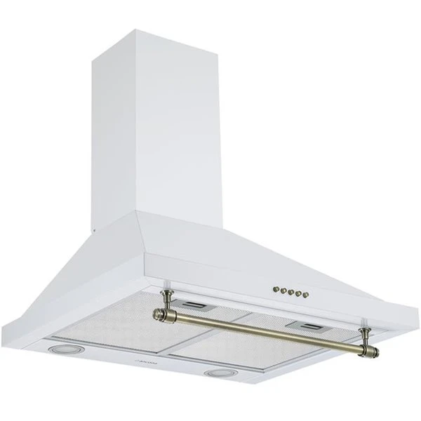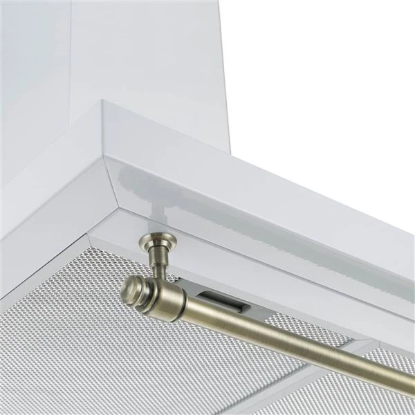 Cette hotte de cuisine de 24 po aux allures rétro est idéale pour les plus petits espaces et propose un style distinctif qui en fera la pièce maîtresse de votre cuisine. Grâce à son puissant moteur à trois vitesses de 440 pcm, cette hotte purifie rapidement l’air dans votre cuisine. De plus, elle est munie des lumières écoénergétiques et durables Pure Lights d’Ancona. Il suffit de vous procurer la trousse de recirculation (vendue séparément) pour convertir aisément cette hotte de cuisine en modèle sans conduit.Hotte de cuisine pyramidale convertible à cheminée en acier blanc de 24 poBarre décorative au fini en laiton antique avec boutons-pressoirs assortisDeux ampoules à DEL Pure Lights(MC) non scintillantes de 1,5 W conçues par Ancona. Puissantes, brillantes et écoénergétiques; elles affichent une durée de vie jusqu’à 10 fois plus longue que les ampoules traditionnellesMoteur 440 pcm testé de façon indépendante; homologué cETLusPanneau de commande à boutons-pressoirs trois vitesses, facile à utiliserLogo discret afin d’assurer l’homogénéité avec les autres électroménagersFiltres à mailles Clean FilterMC en aluminium (lavables au lave-vaisselle)Évacuation vers le haut évent circulaire de 6 poConvertible en unité de recirculation intérieure (sans conduit) à l’achat d’une trousse de filtres de conversion, vendue séparément