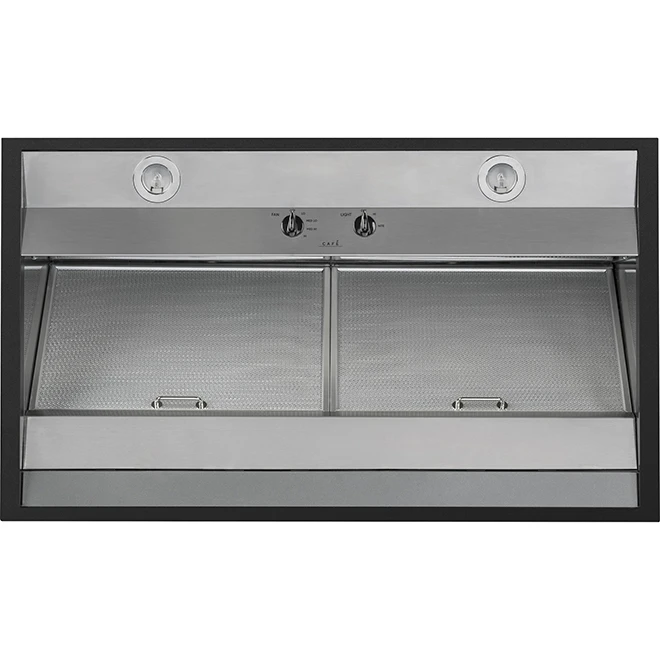 Débarrassez votre cuisine de la graisse, de la fumée et des odeurs désagréables avec la gamme de hottes GE Café(MD). Cette hotte de cuisinière de type commercial est dotée d’un système de ventilation de 590 cpm avec une commande de ventilateur à 4 vitesses et présente une puissance nominale de 7 intensités sonores (sones). Offrant un double éclairage halogène sur le surface de cuisson et réglage de la veilleuse marche/arrêt, cet appareil fournit tout l’éclairage dont vous avez besoin pour préparer vos délicieux repas. Les filtres pratiques allant au lave-vaisselle sont faciles à retirer et replacer. Ce produit est couvert par une garantie limitée de (1) sur tout l’appareil, les pièces et la main-d’oeuvre, service à domicile. Système de ventilation de 590 PCM qui élimine la fumée, la graisse, les odeurs et l’humidité de l’airFournit une lumière vive qui éclaire la surface de cuisson sous la hotteLa finition noire mate donne un aspect classique et contemporain à votre cuisineRéduisez le nettoyage au minimum grâce à un filtre à graisse amovible qui permet d’éviter le nettoyage à la mainFiltre lavable au lave-vaisselle pour un nettoyage facile