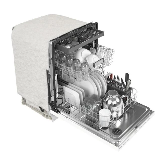 Le lave-vaisselle KitchenAid(MD) fournit l’un des nettoyages les plus silencieux du marché (39 dBA) sans compromettre les performances, ce qui signifie que vous pouvez effectuer un cycle de lavage à tout moment de la journée. Un support à ustensiles situé au troisième niveau peut contenir des couverts, des ustensiles de service et des spatules, et un panier central réglable ajoute de la polyvalence lorsque vient le temps de ranger des articles de grande taille. Les paniers de troisième niveau et central sont équipés de rails SatinGlide(MD) qui assurent un glissement en douceur des paniers lors du chargement ou du déchargement de la vaisselle. Le cycle intuitif ProWash(MC) à touche unique offre des résultats de nettoyage exceptionnels en effectuant des ajustements de réglage en temps réel. L’option de séchage à chaleur prolongée ajoute du temps de séchage pour éliminer tout résidu de rinçage. Les commandes sont situées sur le dessus de la porte, laissant un panneau avant épuré qui s’agencera parfaitement à l’élégance de votre cuisine. L’intérieur durable en acier inoxydable améliore le séchage et résiste aux odeurs. Garantie limitée d’un (1) an, pièces et main-d’oeuvre. Le niveau sonore de 39 dBA assure le travail le plus silencieux possible pour que vous puissiez laver votre vaisselle à n’importe quel momentSystème de détection des fuites : vous aurez l’esprit tranquille grâce à ses 3 niveaux de protection contre les sources potentielles de fuiteLe système de triple filtration utilise trois niveaux de filtration pour éliminer les particules alimentaires pendant les cycles de lavage et de rinçage. L’eau propre circule ainsi dans les bras de lavage et sur la vaisselle, même si des ustensiles de cuisine sales sont présentesL’option de séchage prolongé à la chaleur vous garantit un séchage optimalLe cycle ProWash(MC) utilise des capteurs pour mesurer les niveaux de saleté tout au long du cycle et adapter la durée du lavage et la température de l’eau en fonction des besoins, qu’il s’agisse de saletés tenaces ou plus légères, parce qu’il n’y a pas deux repas identiques et la vaisselle qui en résulte varie beaucoupL’option de séchage à la chaleur réchauffe l’eau de rinçage et la cuve du lave-vaisselle pour que vos couverts en ressortent bien secsLe troisième panier pour ustensiles fournit l’espace pour stocker les articles longs et plats comme les spatules et les cuillères de serviceL’intérieur en acier inoxydable résiste aux rayures, aux taches et aux odeurs tout en conservant la chaleur pour maximiser le séchageLes glissières SatinGlide(MD) des deuxième et troisième paniers glissent tout en douceur pour vous aider à remplir et vider le lave-vaisselle