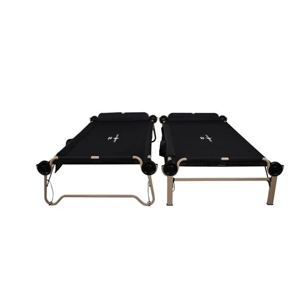 Le cadre est fabriqué en acier antirouille avec un revêtement thermolaquéSuperposable pour maximiser l’espace au solAvec une hauteur au-dessus du sol de 11 po et une distance entre les lits de 21 poCompatible avec une large gamme de tentes de campingSupporte jusqu’à 500 lb