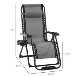 Fauteuil à Posture Zéro-gravité Outsunny En Métal Noir Avec Siège Maillé Gris