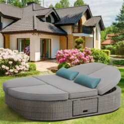 Fauteuil Extérieur 2 Places Henryka, Avec Coussins, En Métal, Beige