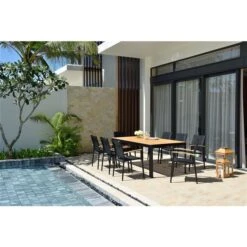 Ensemble à Dîner Extérieur Portals De LifestyleGarden Noir Table 82,7 Po 9 Pièces