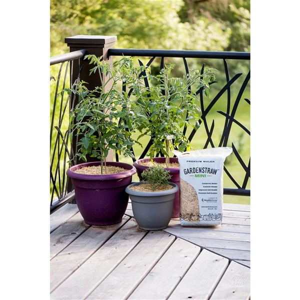 Le paillis de qualité supérieure GardenStraw Mini est idéal pour les jardiniers urbains. Fabriqué à partir de paille de blé renouvelable. C’est le paillis parfait qui conserve l’eau en réduisant l’arrosage jusqu’à 50 %, stabilise l’humidité et la température du sol et empêche les mauvaises herbes de pousser. Le paquet contient 4 sacs de 0,5 pied cube de GardenStraw Mini.Conserve l’eau et nécessite jusqu’à 50 % moins d’eauUn moyen naturel d’empêcher les mauvaises herbes de pousserChaque sac couvre 20 pi2 / 1,9 m2 avec une couche de 2 à 3 pouces d’épaisseur – Total de 80 pi2 /7,4 m2 de couvertureGarde le sol frais et protège le microbiome du solReste en place sans produit collantFabriqué à 100 % de paille de bléIdéal pour tous les types de jardins et de paysages, y compris les petits espaces avec des lits surélevés, des pots suspendus et des conteneurs, des arbres fruitiers et des arbustes et des plantes d’intérieurEn meilleure santé. Plus propre. Vivant.
