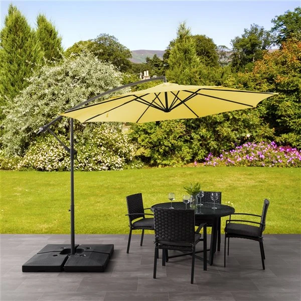 Parasol De Terrasse Jaune Décalé Résistant Aux UV De 9,5 Pieds Et Poids De Base
