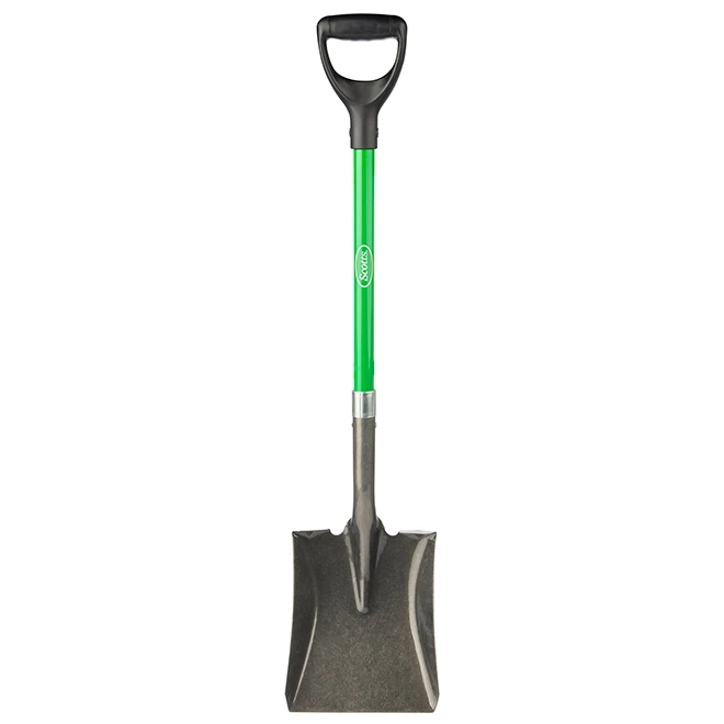 La pelle de jardinage de marque Scotts(MD) est fabriquée en fibre de verre et pourvue d’une tête carrée et poignée en D. Lame carrée en acier forgé qui permet de creuser des matériaux tels que la terre, le gravier, la pierre ou le sableAppuie-pied confortable et sécuritairePoignée en D ergonomique qui accroît la force de levier lorsque vous pelletezPoignée en fibre de verre de 28 pouces pour une portée et un contrôle accrusPoignée ergonomique en PP et TPRLame en acier à revêtement thermolaqué qui résiste à la rouille
