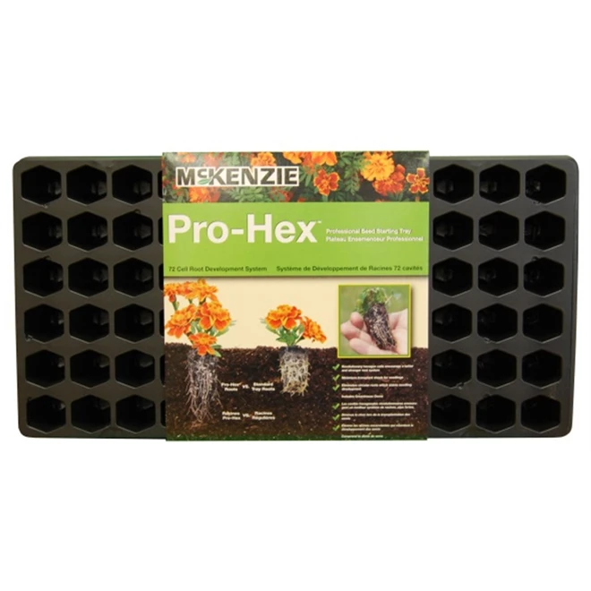 Faites pousser des plantes comme un professionnel avec le plateau pour semis Pro Hex de McKenzie. Les cavités hexagonales sont révolutionnaires car elles permettent le développement d’un meilleur système racinaire. Celui-ci réduit le choc lors de la transplantation des semis. Cette mini serre retardent la poussée des racines circulaires. La forme hexagonale des cellules favorise un système racinaire plus fort et plus profondLe plateau en plastique contient 72 cellules