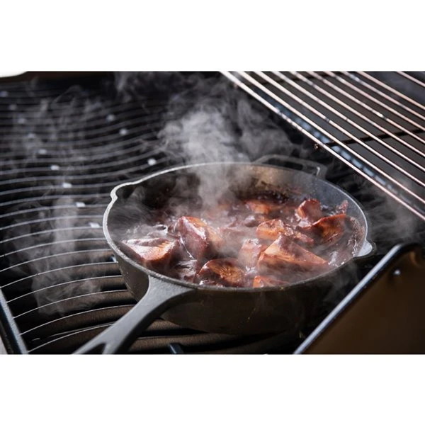 Lorsqu’il s’agit de cuisiner sur le gril, certaines casseroles sont trop minces et certains plats sont trop fragiles, mais cette poêle à frire en fonte de 9,5 po (24 cm) est parfaite. En répartissant et en retenant la chaleur de manière uniforme, cette poêle vous permet d’obtenir la meilleure cuisson à feu vif qui soit. Des légumes, aux plats d’accompagnement, au dessert, vous pouvez utiliser la poêle en fonte n’importe où: sur la cuisinière, dans le four, sur le gril, sur les brûleurs latéraux du gril, sur le charbon de bois, et même sur un feu. Le fini émaillé offre une surface naturellement antiadhésive qui s’améliore avec l’utilisation. Versez facilement les jus de viande et les sauces grâce aux becs verseurs intégrés. Que vous prépariez le déjeuner ou le meilleur des soupers, une poêle en fonte est un ajout polyvalent à votre cuisine intérieure ou extérieure.Diamètre de 9,5 po (24 cm)Surface émaillée au fini antiadhésifPoignée robuste à prise confortableBecs verseurs pratiques