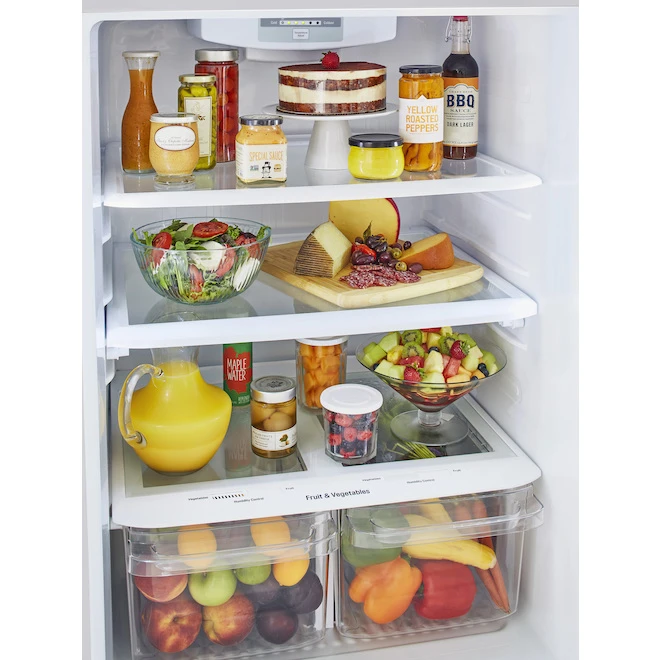 Si la capacité compte beaucoup pour vous, faites le choix du réfrigérateur à congélateur supérieur LG doté d’un réfrigérateur et d’un congélateur combinant une capacité totale de 20,2 pi³. La fraîcheur des aliments constitue également l’une de vos priorités, c’est pourquoi vous apprécierez certainement les bacs à humidité contrôlée pour vos fruits et légumes, et les balconnets pleine largeur pouvant contenir vos grands contenants de boissons. L’éclairage intérieur à DEL avancé de LG se compose de panneaux DEL situés sur le côté du réfrigérateur pour fournir un intérieur exceptionnellement lumineux tout en générant des économies d’énergie par rapport à l’éclairage traditionnel. Les commandes de température numériques sont conçues permettent de surveiller et maintenir l’environnement de conservation afin de maintenir les aliments au frais, tandis que la fonction SmartDiagnosis(MC) intégrée assure un dépannage rapide et efficace : diagnostiquez les problèmes par téléphone ou en utilisant l’application téléchargeable sur votre téléphone intelligent, minimisant les coûts et les inconvénients des appels de service. Grande capacité de 20 pi³Lumières DEL pour réfrigérateur de qualité supérieure