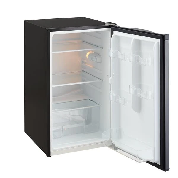 Réfrigérateur compact ayant une grande capacité de et 2.5 clayettes. La porte est réversible, dégivrage automatique, support à canettes et 1 bac à fruits et légumes. Certifié EnergyStar.