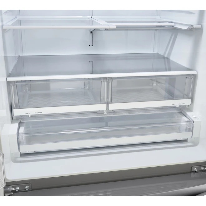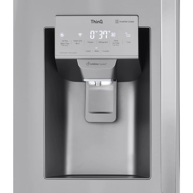 Le réfrigérateur LG de 28 pi³ à portes françaises est équipé d’une machine Craft Ice qui produit de la glace artisanale ronde à fonte lente dans le confort de votre foyer. Vos boissons seront toujours agrémentées de la glace parfaite pour vos soirées entre amis, allant des cocktails artisanaux au whisky en passant par les boissons gazeuses, la limonade et même le café glacé. LG a poussé son système de refroidissement intelligent plus loin en ajoutant le système Door Cooling qui fournit un apport constant d’air froid pour aider à maintenir le contenu de la porte à une fraîcheur optimale. La fonction Smart Diagnosis permet au centre de service de diagnostiquer les problèmes que vous pouvez rencontrer par téléphone ou à l’aide de l’application sur votre téléphone intelligent, ce qui vous permet de minimiser les appels de service coûteux et peu pratiques. Le distributeur d’eau et de glace de ce réfrigérateur LG est l’un des plus grands de sa catégorie, mesurant 9,2 pouces. Qu’il s’agisse d’un pichet ou d’une pinte, vous avez enfin un distributeur de glace et d’eau qui peut s’adapter à presque tous les contenants. Le fini résistant aux taches de LG se nettoie facilement à l’aide d’un chiffon doux et sec. La machine à glace artisanale produit de la glace artisanale ronde à fonte lente à la maison, sans le travail. Donnez à vos boissons la glace parfaite pour un divertissement de haut niveau, des cocktails artisanaux et du whisky aux boissons gazeuses, à la limonade et même au café glacéLG a poussé son système de refroidissement intelligent un peu plus loin en ajoutant Door Cooling+, qui fournit un apport constant d’air froid pour aider à maintenir le contenu des portes à un niveau de fraîcheur optimalLa fonction Smart Diagnosis(MC) aide le centre de service à diagnostiquer les problèmes que vous rencontrez par téléphone ou à l’aide d’une simple application sur votre téléphone intelligent, ce qui vous permet de minimiser les appels de service coûteux et peu pratiquesLe filtre à air purifie l’air du réfrigérateur.La finition résistante aux taches de LG se nettoie facilement à l’aide d’un chiffon doux et sec pour une cuisine distinctive qui répond à vos besoins quotidiens