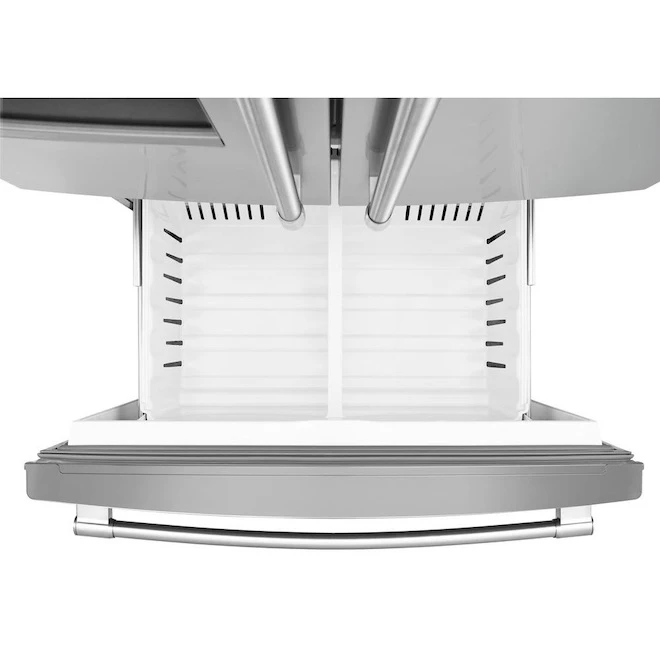 Profitez d’une meilleure organisation et d’une préservation accrue de vos aliments grâce à ce réfrigérateur à portes françaises Maytag. Son fini en acier inoxydable résistant aux traces de doigts facile à laver s’assure que votre réfrigérateur soit aussi élégant à l’extérieur qu’il est fonctionnel à l’intérieur. Sa fonction PowerCold conserve vos produits à la température idéale en appuyant simplement sur un bouton. De plus, son tiroir à charcuteries pleine largeur Wide-N-Fresh est doté d’un système de contrôle de la température et peut accommoder les plateaux de réception. Son éclairage DEL BrightSeries est conçu pour projeter une vive lumière blanche durable, tandis que ses 2 bacs à fruits et légumes à humidité contrôlée FreshLock protègent la saveur de vos aliments pendant longtemps. Enfin, son distributeur encastré dans la porte offre un accès rapide à de l’eau filtrée et des glaçons. Cet appareil est couvert par une garantie limitée d’un an sur les pièces et la main d’œuvre, et d’une garantie limitée de 10 ans sur les pièces du compresseur uniquement. Grâce au fini en acier inoxydable qui résiste aux traces de doigts, votre réfrigérateur est aussi esthétique à l’extérieur qu’il est fonctionnel à l’intérieurLa fonction PowerCold(MD) abaisse rapidement la température partout dans votre réfrigérateur pour une fraîcheur optimaleLe tiroir à charcuterie à température contrôlée Wide-N-Fresh(MC) est idéal pour les grands plateaux de réception et les bacs à charcuterieL’éclairage à DEL BrightSeries(MC) projette une lumière plus vive et plus blanche à l’intérieurLes bacs à légumes FreshLock(MC) à humidité contrôlée aident à préserver le bon goût des légumes verts et la pleine saveur de vos fruitsLa machine à glaçons installée en usine produit tous les glaçons dont vous avez besoin, et ce, toute l’annéeGrâce à la garantie limitée de 10 ans sur le compresseur (pièces uniquement), le coeur du réfrigérateur, vous pouvez compter sur lui pour refroidir tous vos aliments pendant des années