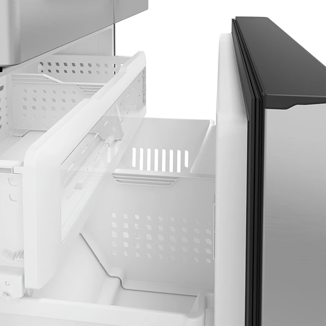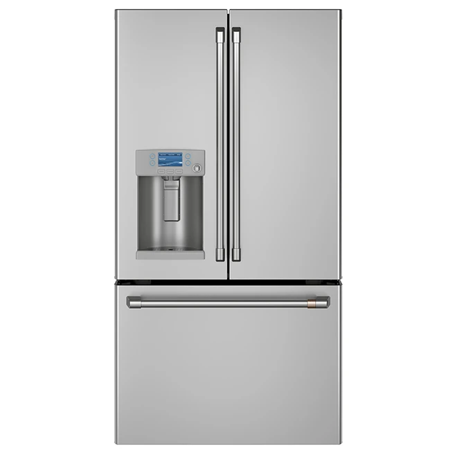 Créez un look intégré avec ce réfrigérateur GE Café à profondeur de comptoir. Offrant une capacité de 22,2 pi³, il dispose d’un distributeur d’eau chaude pratique avec des réglages précis de température et de mesure. Utilisez votre voix ou votre appareil intelligent pour préchauffer l’eau pour un thé relaxant ou un couscous léger! Ce réfrigérateur à portes françaises est doté d’un éclairage lumineux à DEL et est équipé d’évaporateurs TwinChill pour conserver la fraîcheur de vos aliments pour plus longtemps. Le stockage des aliments sera un jeu d’enfant avec les 5 étagères en verre, y compris une étagère Quick Space qui se range pour faire de la place pour des articles plus grands, 6 compartiments de porte, un compartiment à produits laitiers, un plateau rabattable, 2 bacs à légumes à humidité contrôlée et un tiroir à température contrôlée avec éclairage coloré à DEL. De plus, le congélateur est équipé de 2 paniers et dispose d’un réglage Turbo Freeze, ainsi que de la technologie FrostGuard qui ne décongèle que lorsque nécessaire, réduisant ainsi les brûlures de congélation. Et pour encore plus de commodité, cet appareil est compatible avec Amazon Alexa, Google Assistant et IFTTT. La commodité inattendue d’un service individuel chaud dans votre réfrigérateur : grâce à un distributeur d’eau chaude intégré au distributeur d’eau du réfrigérateur, vous obtenez de l’eau fraîche et filtrée pour votre café ou votre thé à chaque fois, pas besoin de le remplir à nouveauFiltre à eau de qualité pharmaceutique : le système de filtration exclusif de GE élimine les traces de produits pharmaceutiques qui pourraient se trouver dans votre eau et votre glace. Produit testé et vérifié pour filtrer cinq traces de produits pharmaceutiques, dont l’ibuprofène et la progestéroneCommandez les fonctions de votre réfrigérateur à distance puisqu’il est connecté au Wi-Fi.Ensemble de poignées personnalisables choisies par les concepteurs pour une cuisine sur mesureCertification Energy Star qui vous assure une consommation d’énergie efficaceUn distributeur d’eau et de glaçons externe en acier inoxydable sans soudure muni d’un plateau coulissant pour les grands contenants