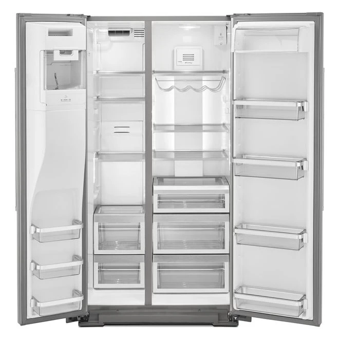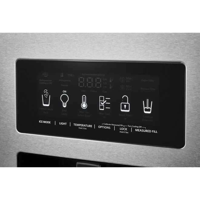KitchenAid présente un chic réfrigérateur moderne doté du revêtement spécialisé PrintShield résistant aux salissures pour que vous puissiez cuisiner au lieu de nettoyer. Vous pouvez ainsi nettoyer les taches et traces de doigts sur la surface simplement à l’aide d’eau et d’un chiffon doux. Il possède également le système de conservation Preserva consistant en 2 systèmes de refroidissement indépendants qui assurent des températures constantes et optimales aussi bien pour vos aliments frais que congelés. Le filtre à air FreshFlow aide à réduire les odeurs, tandis que le conservateur de fruits et légumes aide à retarder la surmaturation. Le bac à glaçons In-Door-Ice est monté à l’intérieur de la porte et propose un format compact qui laisse davantage d’espace pour le rangement d’articles sur les tablettes. Le distributeur intégré à la porte est accompagné de pré-réglages permettant de remplir un verre ou un contenant à un niveau d’eau précis. Avec 19,8 pi³ de capacité totale, le réfrigérateur comporte des balconnets de porte transparents et amovibles, des tablettes réglables et même un support pour vos bouteilles de vin. Modèle acier inoxydable. Le remplissage d’eau mesuré affiche et distribue automatiquement l’eau en onces, tasses ou litres. Vous pouvez choisir parmi trois réglages programmés pour verser une quantité mesurée, de plus, deux préréglages personnalisés peuvent être programmés pour les articles fréquemment remplisLe fini PrintShield(MC) résiste aux traces de doigts et aux taches en plus de se nettoyer avec un simple chiffon et de l’eauLa conception en contre-profondeur permet à ce réfrigérateur autoportant de s’adapter presque parfaitement aux armoires environnantes pour offrir un aspect encastré et permettre une plus grande liberté de mouvement dans votre cuisineSystème de soins alimentaires Preserve(MD)Le système In-door-ice(MD) ajoute de l’espace à l’intérieur du réfrigérateur grâce à un bac à glaçons qui se monte à l’intérieur de la porte gauche pour laisser de l’espace supplémentaire sur les tablettesL’éclairage DEL consomme moins d’énergie que les ampoules à incandescence – plusieurs lampes sont judicieusement placées dans le réfrigérateur et le congélateur, ce qui permet de trouver facilement les articles en un coup d’oeilLes bacs de porte transparents avec des garnitures métalliques vous permettent de voir les étiquettes à travers les bacs, vous donnant une visibilité et un accès facile à vos condiments et autres articles. Chaque bac est amovible, ce qui les rend parfaits pour transporter des articles sur le comptoirLe distributeur extérieur de glace et d’eau permet un accès rapide et facile à l’eau fraîche et à la glace
