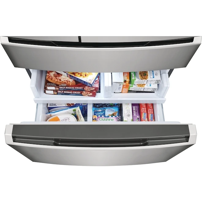 Ce réfrigérateur à porte française Frigidaire Gallery préserve le goût et la texture de vos aliments, même les plus délicats. Notre système de fraîcheur est doté de technologies qui préservent la fraîcheur des aliments et réduisent les déchets alimentaires, comme notre système de refroidissement, nos bacs à légumes avancés et notre système de filtration d’air et d’eau authentique. Ce produit bénéficie d’une garantie limitée d’un an. Acier inoxydable Smudge-Proof(MD) qui résiste aux empreintes et se nettoie facilementLes tiroirs conservent les produits frais grâce à 3 technologies avancéesOptimisez l’espace utilisable grâce à notre système d’organisation ingénieuxPassez du réfrigérateur au congélateur avec le tiroir thermique Custom-Flex(MD)Doté de technologies qui réduisent les déchets alimentaires et la consommation d’énergie, ce réfrigérateur est une option intelligente pour l’environnement et votre porte-monnaieConservez une eau plus saine et de bon goût grâce au filtre à eau qui réduit jusqu’à 99 % des contaminants et éliminez l’utilisation de plastique et les coûts liés à la consommation de l’eau en bouteilleNotre système de refroidissement assure une distribution égale de la température et du flux d’air, minimisant ainsi les problèmes courants tels que les brûlures de congélation et les points chaudsÉconomisez de l’argent et optimisez l’efficacité énergétique grâce à la certification ENERGY STAR(MD)Accédez facilement à vos aliments préférés – atteignez jusqu’à 75 % de vos aliments avec une seule porte ouverte