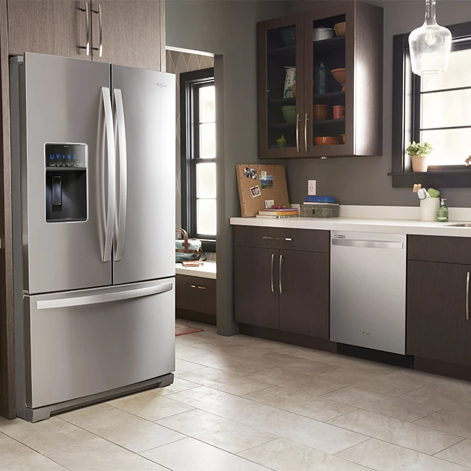 Réfrigérateur Portes Françaises Whirlpool, 26,8 Pi³, Acier Inoxydable