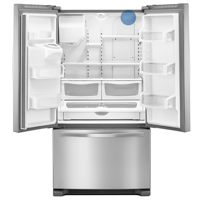 Ce réfrigérateur à portes françaises haute capacité de Whirlpool combine le style et la commodité. Ses tablettes antidébordement contiennent les dégâts et offre un espace abondant de rangement, sans oublier son tiroir garde-manger pleine largeur et ses balconnets de porte ajustables. Le congélateur propose un espace de rangement sur 2 niveaux et le distributeur à glace et à eau avec système de filtration EveryDrop vous donne accès à de l’eau filtrée rafraîchissante sur demande. Les bacs à fruits et légumes à humidité contrôlée sont équipés d’un conservateur de fruits et légumes qui préserve leur fraîcheur pendant longtemps. Ce réfrigérateur est facile à nettoyer et garde son apparence resplendissante en tout temps grâce à son fini en acier inoxydable résistant aux traces de doigts. Ce produit est certifié Energy Star et est couvert par une garantie d’un an sur les pièces et la main d’œuvre. Trouvez le rangement flexible dont votre famille a besoin et les commandes faciles à toucher pour la glace et l’eau filtrées avec ce réfrigérateur certifié Energy Stard(MD) qui s’efface facilement des empreintes digitales et des tachesUn tiroir double à humidité contrôlée qui maintient vos fruits et légumes dans leur environnement idéal tandis que les bacs pour 4L réglables se déplacent n’importe où dans la porte pour une plus grande flexibilité de chargement quand et où vous en avez besoinSimplifiez le nettoyage grâce aux tablettes en verre antidébordement qui retiennent les liquides et les empêchent de se répandreL’espace d’entreposage sur 2 niveaux permet d’organiser facilement vos plats chouchous surgelés