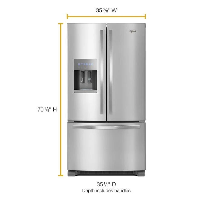 Réfrigérateur Whirlpool à Portes Françaises, 36 Po, 25 Pi³, Acier Inoxydable