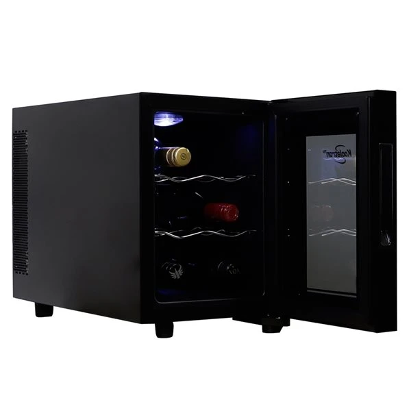 Entreposez vos vins favoris à leur température idéale avec cet élégant refroidisseur à vin de Koolatron. Ce petit réfrigérateur gardera vos vins en sécurité et prêts à être consommés.Unité attrayante autoportante qui peut être placée n’importe où se trouvant une source d’alimentationContrôle par écran tactile à l’extérieurPorte en vitre protégeant des rayons UVTechnologie de refroidissement thermoélectrique écologique et fiable sans aucune vibration ou émissions de gaz CFCTempérature allant de 8 °C à 18 °CCapacité de 6 bouteillesGrilles amovibles pour accommoder différentes tailles et formes de bouteillesÉclairage DEL intérieur n’émettant aucune chaleurRefroidissement thermoélectrique sans vibration qui ne perturbera pas les sédiments
