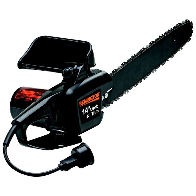 Scie à chaîne électrique avec moteur de 8.0 A. Guide et chaîne de 14po. Lubrification manuel à bouton poussoir. Complètement assemblé. Garantie limitée de 2 ans. Entièrement assemblé,Vis de réglage externe pour la tension de la chaîneLa tronçonneuse Limb N’ Trim est un outil léger et pratique pour tous vos besoins de coupePratiquement sans entretien, cette scie est parfaite pour les propriétaires qui doivent entretenir ou nettoyer les tâches quotidiennes d’aménagement paysagerProtège-mains intégré pour une plus grande sécuritéLe graisseur à bouton-poussoir est une poire facile à presser qui fournit la bonne quantité d’huile au moment voulu