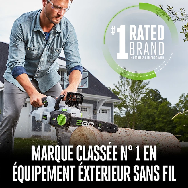 La tronçonneuse sans fil EGO Power+ livre vraiment la performance du gaz sans le bruit, ennuies et émanations. Avec son incroyable vitesse de 6800 tr/min, un guide-chaîne tranchant de 16 pouces combiné à un moteur sans balais à haut rendement vous obtiendrez des coupes propres sans effort. Le moteur sans balais prolonge à la fois la durée de vie de l’outil et la durée de fonctionnement. L’outil résistant aux intempéries est également pourvu d’un frein de retour de chaîne procurant plus de sécurité et un réglage de chaîne efficace. La batterie avancée EGO Power+ 56 V utilise la technologie de pointe ARC Lithium-ion(MC) pour fournir une puissance robuste et est conçue pour s’adapter à tout équipement EGO Power+. Parmi les autres caractéristiques, la scie à chaîne dispose d’un protège-main avant bloquant la projection de débris, d’un bouton de sécurité empêchant les démarrages intempestifs et d’un pignon de renvoi à trait étroit. Cette tronçonneuse EGO Power+ livre une puissance incroyable. Ce produit est couvert par une garantie de 5 ans. Vitesse : 6800 tr/minFrein de recul de la chaîneRéglage de la tension de la chaîneConstruction hydrofuge (ipx4)Longueur du guide-chaîne : 16 poucesDiamètre de coupe maximal : 16 poucesDouble barre de gardeConception à faible rebond de la chaîneGuide réversible