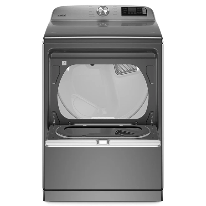 Une pression sur le bouton de surpuissance des sécheuses robustes Maytag amplifie la puissance de tout programme en augmentant le temps, la chaleur et le culbutage. Cette sécheuse de 7,4 pi³ sèche uniformément grâce à la détection d’humidité perfectionnée qui utilise plusieurs capteurs pour surveiller l’humidité et la température de l’air à l’intérieur et ajuste le programme en conséquence. De plus, l’application Maytag vous permet de contrôler votre appareil, de recevoir des alertes de fin de cycle et de diagnostiquer certains problèmes à partir d’un appareil intelligent afin de rester en contrôle et de gérer la lessive à partir de n’importe où. Ce produit est accompagné d’une garantie limitée d’an sur les pièces et la main d’oeuvre à domicile. Capacité de 7,4 pi³ qui vous donne beaucoup d’espace pour sécher les objets encombrantsLa fonction de grande puissance augmente la puissance de séchage sur n’importe quel cycle en augmentant le temps, la chaleur et le culbutageLa porte rabattable pratique offre une plateforme solide qui permet de sortir, plier et d’empiler les vêtementsRestez connecté et gardez le contrôle de n’importe où avec cette sécheuse optimisée pour le Wi-Fi