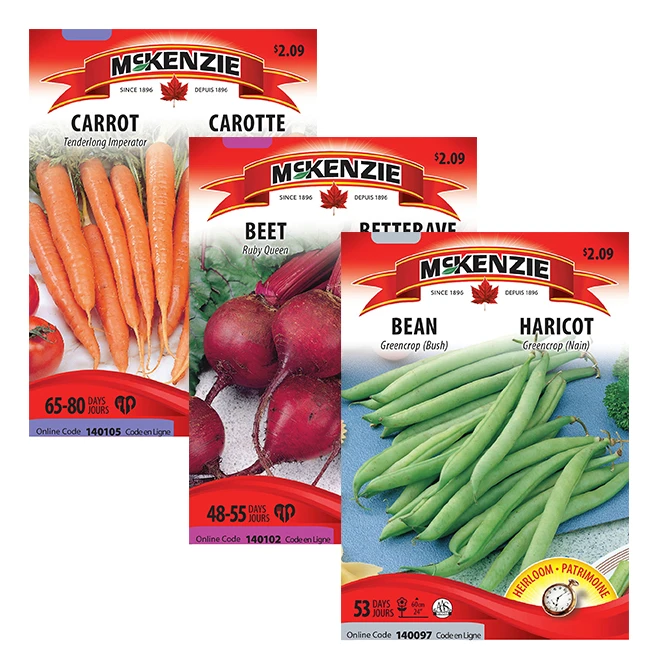 Commencez votre jardin printanier avec ces graines de légumes de marque McKenzie(MD). Cultivez des carottes, des betteraves et des haricots que vous pouvez déguster en famille!