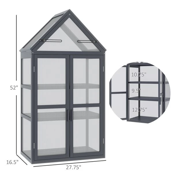 Cette serre d’Outsunny vous permet de faire pousser des plantes presque n’importe oĂą. Elle a un cadre en bois et des panneaux en polycarbonate transparent. Cette serre garde la chaleur Ă l’intĂ©rieur tandis que les panneaux transparents laissent passer le soleil pour nourrir vos plantes. Trois niveaux d’Ă©tagères crĂ©ent un espace de rangement pour vos pots de fleurs. Les ouvertures sur le toit et les deux portes permettent une bonne circulation de l’air et un accès facile.Serre robuste et compacte pour une utilisation intĂ©rieure et extĂ©rieureProlonge la saison de croissance et protège les jeunes plantes du gelLes Ă©tagères Ă 3 niveaux offrent suffisamment d’espace de rangementLes panneaux en polycarbonate transparent permettent une transmission maximale de la lumière tout en conservant la chaleurCadre en bois massif avec une couche de peinture pour plus de protection