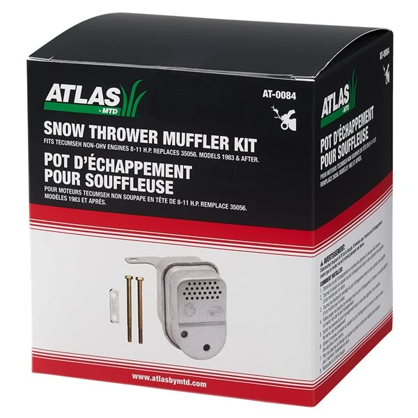 Replacement snowthrower muffler for Tecumseh non-OHV engines 8-11 HP. Fits Tecumseh snowthrower engines 1983 and newer. The kit includes muffler, mounting plate, and 2 bolts.Silencieux pour souffleuses à neige équipées d’un moteur Tecumseh de 8 à 11 HPPour les moteurs Tecumseh de souffleuses à neige (1983 et années ultérieures)Comprend un silencieux, une plaque de montage et deux boulonsRemplace Tecumseh OE# 35056