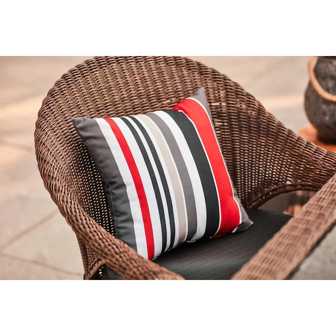Style Selections Coussin En Polyester Garden Treasures, 16 Po X 16 Po, Rayé Rouge Et Gris
