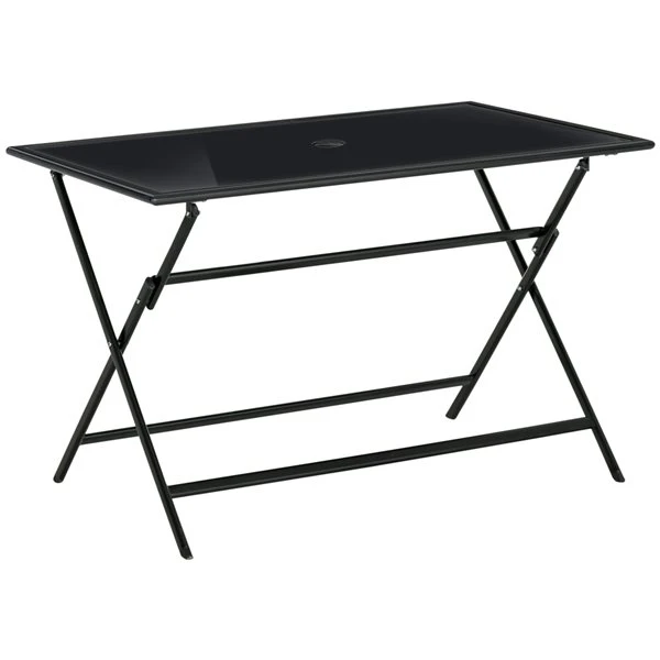Créez une salle à manger simple et accueillante sur votre patio avec cette charmante table à manger pliable par Outsunny. Le cadre en métal robuste avec coussinets de pied antidérapants est stable et conçu pour durer des années. Cette table est dotée d’un dessus en verre trempé avec un trou pour parasol au milieu.Grand dessus de table en verre pour 6 personnesUn trou central de 16,5 po (42 mm) / 19,75 po (50 mm) de diamètre pour maintenir un parasol avec un poteau de 15 po (38 mm) / 19 po (48 mm) de diamètreFacile à plier dans une taille compacte pour le rangementFacile à nettoyerCadre robuste et durable en métal thermolaqué