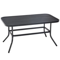 Profitez de la commodité d’une table d’extérieur qui s’installe rapidement. Cette jolie table basse de la collection Pelham Bay de Style Selections est le meuble idéal pour recevoir amis et famille dans votre cour arrière. Elle est dotée d’un dessus noir qui ne manquera pas de mettre en valeur votre terrasse ou votre cour arrière. De plus, sa structure robuste en acier est recouverte d’un fini thermolaqué noir. De plus, tout le matériel d’installation est inclus pour faciliter l’assemblage. Pour votre tranquillité d’esprit, une garantie d’un an vous est offerte à l’achat de cette table basse. Pour créer l’espace extérieur parfait, pensez à l’agencer à d’autres pièces de la collection Pelham Bay. Garantie limitée d’un an pour votre tranquillité d’espritDessus de table à lattes métalliques qui donnera du cachet à votre décor de patioTable rectangulaire idéale pour les petits patios et les cours arrièreQuincaillerie compriseTable basse rectangulaire surmontée d’un plateau en lattes d’acierL’article est livré non assembléLe cadre est fabriqué en acier robuste et a une finition thermolaqué noire