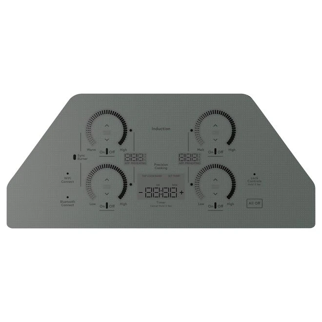 Cette surface de cuisson à 4 éléments de 30 po Café aura tôt fait de vous séduire. Son panneau de commandes, moderne et rétroéclairé se fond dans le décor lorsqu’il est au repos. La surface entièrement lisse ne demande qu’un linge humide pour son entretien et les liquides renversés n’y brûlent pas. Les 19 réglages de chaleurs répondront à tous vos besoins en cuisson, du feu le plus doux au feu le plus intense grâce et qui s’ajuste sans effort au moyen de la technologie à induction. Elle éteint même l’élément dès le retrait de la casserole pour éviter les incidents. Intelligente, elle communique avec votre téléphone par Wi-Fi afin de vous donner accès à plusieurs réglages à distance. La table de cuisson de rêve! Wi-Fi intégré : cette table de cuisson intelligente est dotée d’un système Wi-Fi intégré qui vous permet de surveiller vos brûleurs et d’afficher les niveaux de puissance, la température de précision ou la mise en marche et l’arrêt de l’appareil.Surface plus sécuritaire : inutile de vous inquiéter grâce à cette table de cuisson à induction qui détecte automatiquement vos ustensiles de cuisine, de sorte que lorsqu’ils sont retirés, le brûleur s’éteint automatiquement.Surface facile à nettoyer : une surface en verre lisse avec des commandes tactiles à glissement et une technologie d’induction qui garantit que les éclaboussures ne brûleront pas, facilitant ainsi le nettoyage de cette table de cuisson.Réglage précis de la température : réglez votre brûleur à un degré précis, et non pas seulement à un niveau élevé, moyen ou bas, au moyen du bouton de réglage précis de la température.Cuisson guidée : suivez une recette commentée en vidéo et vos brûleurs ajusteront automatiquement le temps et la température à l’aide d’une casserole intelligente.Minuterie : la minuterie de cuisine pratique permet de coordonner la préparation des repas et la cuisson.Réglage et précision sans effort : 19 réglages de chaleur différents et des commandes éclairées à l’aide de DEL blanches utilisent la technologie de l’induction pour garantir que les brûleurs s’ajustent et réagissent rapidement.Chauffage le plus efficace : l’énergie circule directement dans votre casserole plutôt que sur la surface de la table de cuisson et les zones environnantes, ce qui permet d’utiliser la chaleur de la façon la plus efficace.Ébullition rapide : faites bouillir l’eau plus rapidement grâce aux éléments à induction qui chauffent immédiatement votre casserole et non la surface de la table de cuisson.