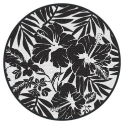 Tapis Rond Multy Home Noir Et Blanc En Polyester De 5 Pi De Diamètre