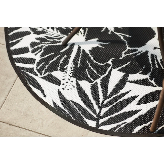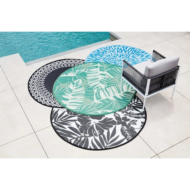 Profitez d’une journée d’été à la plage, d’un pique-nique ou du votre bord de piscine avec ce tapis en plastique tissé. Il se roule facilement pour se rendre à la plage ou sur le terrain de jeu, et il est facile à entretenir. Idéal pour une utilisation extérieure dans les zones abritées, notamment les entrées, les patios, les porches, les vérandas, les balcons et les garages. Son motif en oléfine tissée est réversible. Ce tapis résistant aux rayons UV et à l’eau protège les sols, les terrasses ou les patios de l’usure. Balayer, passer l’aspirateur ou rincer avec un tuyau d’arrosage ; ne pas laver à la machine ni sécher par culbutage et ne pas utiliser d’agent de blanchiment. Le motif en oléfine tissée est réversibleTapis résistant aux rayons UV et à l’eau qui protégera vos planchers, votre terrasse ou votre patio de l’usureAjoutez une touche de couleur et de design à votre patio d’arrière-courIdéal comme tapis de pique-nique ou de plagePour prolonger la durée de vie du tapis, couvrez-le ou rangez-le lorsqu’il n’est pas utiliséBalayer, aspirer ou rincer avec un tuyau d’arrosage, ne pas laver ou sécher à la machine