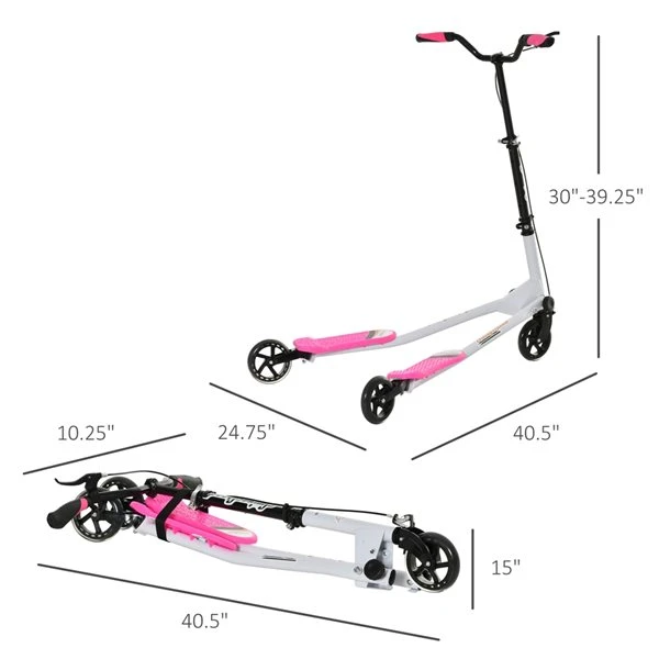 Trottinette Ajustable Pour Enfants Par Qaba à 3 Roues En Acier Noir Et Rose