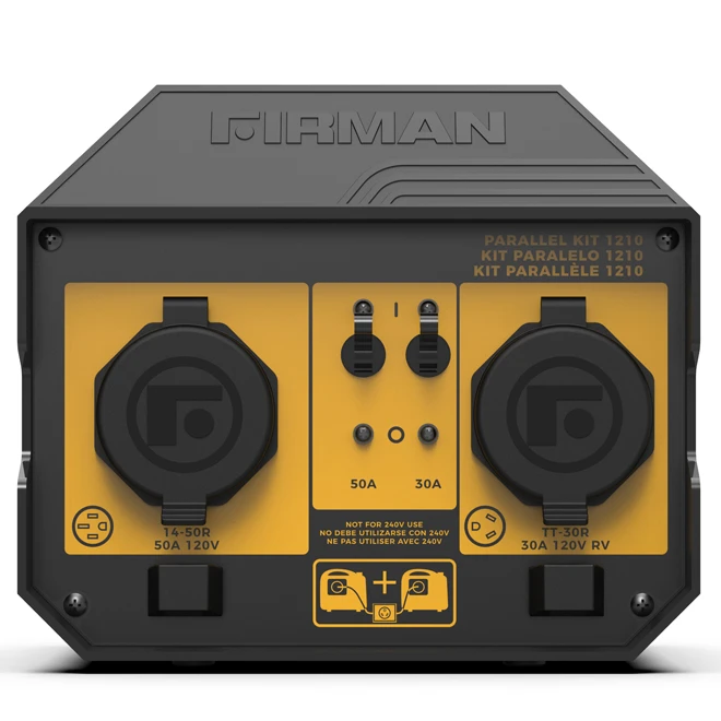 Le trousse de jumelage pour branchement en parallèle Firman double pratiquement la puissance en branchant deux génératrices à onduleur Firman ensemble. Cette trousse peut relier deux génératrices de la grande famille Firman, allant de la plus petite de 2100 watts à la plus grande de 3300 watts. Les couvercles de prises intégrés sont de série sur cette trousse de jumelage afin de protéger les prises de la poussière et des débris. De plus, elle comprend un éclairage DEL sous chaque prise qui améliore la visibilité à tout moment. La trousse de jumelage pour branchement en parallèle 1210 comprend une prise 14-50R de 50 ampères et une prise TT-30R de 30 ampères. Compartiment intégré pour les cordons parallèlesConception compacte et portableDeux prises : 14-50R et TT-30RFacile à utiliserGarantie de 120 joursPanneau DEL améliorant la visibilité