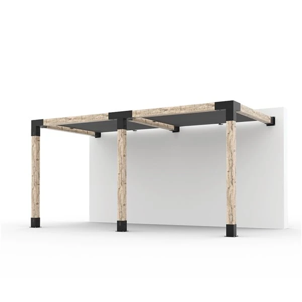 Trousse de pergola double 8 pi x 16 pi à support mural Toja Grid avec 2 voiles d’ombrage.Finis les instructions compliquées et les longs temps de configuration.Assemblage rapide et facile, environ 60 minutes par section, sans outils spéciaux requisBois non inclusVous pouvez utiliser n’importe quel bois sec et droit qui s’adapte à nos supports et qui est suffisamment solide pour construire une pergola. De par leur conception, nos produits vous donnent la liberté de choisir le bois qui convient le mieux à votre conNotez que nos supports sont fabriqués pour s’adapter au bois dressé. Le bois 4×4 est en fait 3,5 po. x 3,5 po.; l’industrie l’appelle simplement 4×4. Le bois 6×6 est en fait 5,5 po. x5,5 po.; l’industrie l’appelle simplement 6×6.Tous nos supports nécessicent seulement 2 vis par côté (chaque ensemble de huit trous). Les autres trous restent disponibles pour de futurs accessoires.