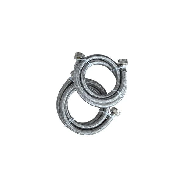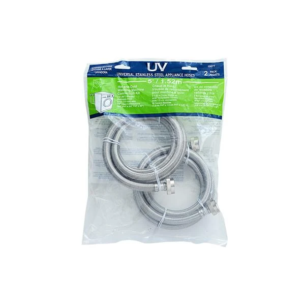 La trousse de raccordement pour machine à laver UV(MD) pour eau chaude et froide comprend deux tuyaux flexibles en acier inoxydable de 3/4″ x 3/4″ x 5′. Fabriqués en PVC de haute qualité et tressés en acier inoxydable, ces connecteurs n’éclateront pas et ne fuiront pas, même dans les conditions de pression les plus élevées. Les tuyaux de raccordement de grand diamètre permettent à votre machine à laver de se remplir d’eau plus rapidement, économisant ainsi de l’énergie et du temps.Paquet de 2Connecteur de 60 po de longueur avec un diamètre largeRaccord de tuyau de 3/4 pouceTuyau flexible en acier inoxydableCertifié UPC/NSF
