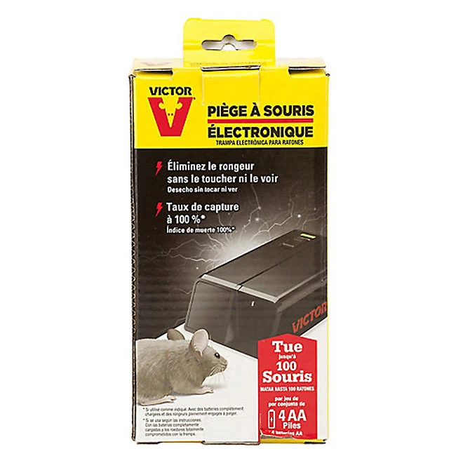 Le piège électronique à souris utilise une technologie innovante pour délivrer une décharge de haute intensité qui n’inflige pas de douleur. Ce puissant appareil peut tuer jusqu’à 100 souris par jeu de piles (4 AA). Facile à utiliser, il suffit de placer un appât riche en protéines dans le godet et de disposer le piège armé dans un endroit hautement fréquenté par les rongeurs. Lorsque le piège basé sur une technologie avancée utilisant un circuit intelligent détecte la présence d’une souris dans le tunnel, il déclenche une décharge de haute tension qui tue la proie sans cruauté. Après la prise d’une souris, un voyant DEL vert clignote. La chambre de destruction est amovible afin que vous puissiez facilement jeter le rongeur mort sans devoir le regarder ni le toucher. Cette chambre amovible facilite également la pose de l’appât. La conception nouvelle et améliorée du piège électronique offre un meilleur accès à la plaque qui vous permet de la nettoyer facilement entre les utilisations. De plus, la conception du tunnel et le commutateur de sécurité intégré qui désactive le piège lorsqu’il est ouvert offrent une protection aux enfants et aux animaux de compagnie. Utilisation intérieure uniquement